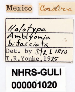 ![]() Amblyonia bifasciata Stål, 1870. Reference: Stål, C. 1870, Enumeratio Hemipterorum. Bidrag till en förteckning öfver alla hittills kända Hemiptera - Kongliga Svenska Vetenskaps-Akademiens Handlingar, Ny Följd, Nionde bandet, Första häftet. p. 172. Return to species-list. |