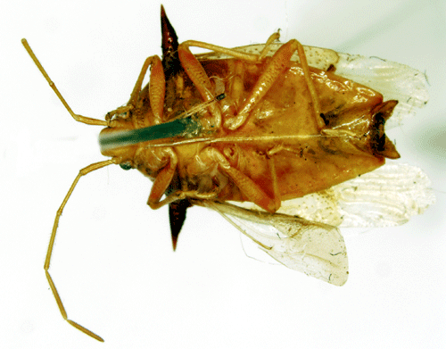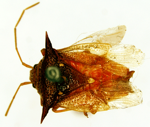 ![]() Elasmucha ferruginosa Stål, 1871. Reference: Stål, C. 1871, Hemiptera insularum Philippinarum. Bidrag till Philippinska öarnes Hemipter-fauna - Öfversigt af Kongliga Vetenskaps-Akademiens Förhandlingar tjugondesjunde årgången, N.o 7 p. 640. Return to species-list. |