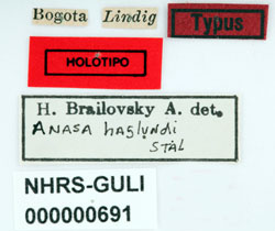![]() Anasa haglundi Stål, 1870. Reference: Stål, C. 1870, Enumeratio Hemipterorum. Bidrag till en förteckning öfver alla hittills kända Hemiptera - Kongliga Svenska Vetenskaps-Akademiens Handlingar, Ny Följd, Nionde bandet, Första häftet. pp. 190-191. Return to species-list. |