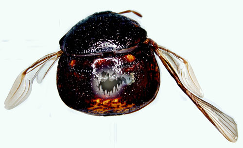 ![]() Coptosoma insignitum Montandon, 1894. Reference: Montandon, A. L. 1894, Noveaux genres et espéces de la S. F. des Plataspidinae - Annales de la Société Entomologique de Belgique, vol. 38, Bruxelles, pp. 262-263. Return to species-list. |