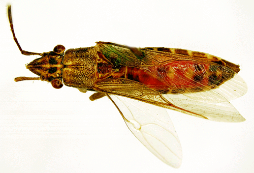 ![]() Hypselopus sordidatus Stål, 1858. Reference: Stål, C. 1858, Orthoptera och Hemiptera från södra Afrika - Öfversigt af Kongliga Vetenskaps-Akademiens Förhandlingar femtonde årgången p.315. Return to species-list. |