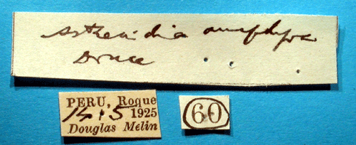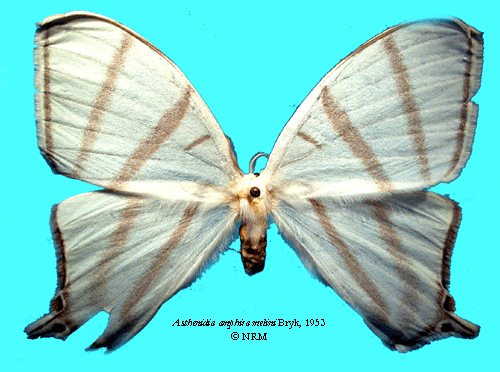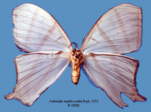 ![]() Asthenidia amphira melini Bryk, 1953. Reference: Bryk, F. 1953, Lepidoptera aus dem Amazonasgebiete und aus Peru gesammelt von Dr. Douglas Melin und Dr. Abraham Roman. - Arkiv för Zoologi Band 5 nr. 1, Almqvist & Wiksell Boktryckeri, Uppsala. 268 pp. Return to species-list. |