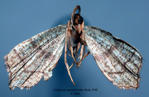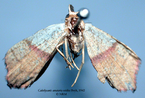 ![]() Calothysanis amataria ovidius Bryk, 1942. Reference: Bryk, F. 1942, Zur Kenntnis der Grosschmetterlinge der Kurilen (Neue Schmetterlinge aus dem Reichsmuseum in Stockholm VI.). - Deutsche Entomologische Zeitschrift "Iris" Band 56, Dresden. 1 - 90 pp. Mit 2 Tafeln und 4 Textabbildungen. Return to species-list. |