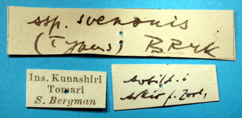 Reference: Bryk, F. 1948, Zur Kenntnis der Großschmetterlinge von Korea. Pars II. Macrofrenatae II (finis): Notodontidae, Lymantriidae, Saturniidae, Brahmaeidae, Drepanidae, Epiplemidae, Lasiocampidae, Arctiidae, Thyatiridae, Noctuidae, Geometridae. Heteroneura: Fam.: Cochlifiidae, Zygaenidae. Tineoidea: Fam.: Cossidae, Psychidae. Mit 7 Tafeln. - Arkiv för Zoologi Band 41 A nr. 1, Almqvist & Wiksell Boktryckeri, Uppsala. 1 - 225 pp.