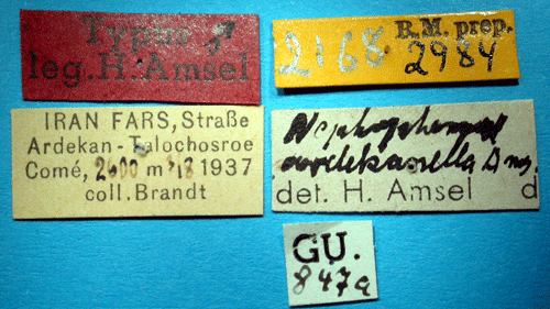 Nephopteryx ardekanella Amsel, 1951. Reference: Amsel, H.G. 1951, Die Microlepidopteren der Brandt'schen Iran-Ausbeute 3. Teil. - Arkiv för Zoologi Band 1 nr. 36, Almqvist & Wiksells Boktryckeri AB, Uppsala. pp. 525-563 Mit 87 Figuren im Text. Return to species-list. |