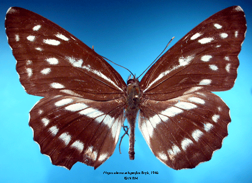 ![]() Neptis alwina subspecifica Bryk, 1946. Reference: Bryk, F. 1946, Zur Kenntnis der Großschmetterlinge von Korea. Pars I. Rhopalocera, Hesperiodea et Macrofrenatae I Sphingidae. Mit 5 Tafeln und 1 Karte. - Arkiv för Zoologi Band 38 A nr. 3, Almqvist & Wiksell Boktryckeri, Uppsala. 1 - 74 pp. Return to species-list. |