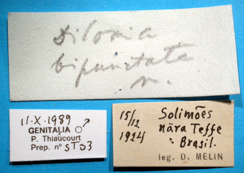 ![]() ![]() Dylomia bipunctata Bryk, 1953. Reference: Bryk, F. 1953, Lepidoptera aus dem Amazonasgebiete und aus Peru gesammelt von Dr. Douglas Melin und Dr. Abraham Roman. - Arkiv för Zoologi Band 5 nr. 1, Almqvist & Wiksell Boktryckeri, Uppsala. 268 pp. Return to species-list. |