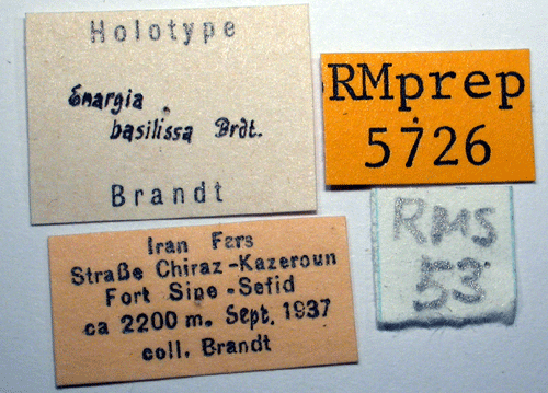 Enargia basilissa Brandt, 1938. Reference: Brandt, W. 1938, Beitrag zur Lepidopteren-Fauna von Iran. Neue Gattungen, Arten und Formen. - Entomologische Rundschau Jahrgang 55, Stuttgart. p. 552. Return to species-list. |