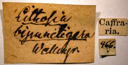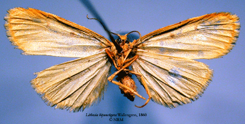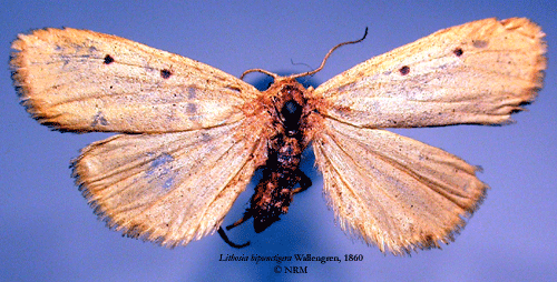 ![]() Lithosia bipunctigera Wallengren, 1860. Reference: Wallengren, H.D.J. 1860, Lepidopterologische Mittheilungen. - Wiener Entomologische Monatschrift Band IV Nr. 2, Karl Ueberreuter, Alservorstadt. pp 33-46. Return to species-list. |