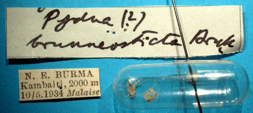 Reference: Bryk, F. 1949, Entomological Results from the Swedish Expedition 1934 to Burma and British India. Lepidoptera: Notodontidae Stephens, Cossidae Newman and Hepialidae Stephens. Gesammelt von René Malaise. Mit 4 Tafeln und 1 Karte in Text. - Arkiv för Zoologi Band 42 A nr. 19, Almqvist & Wiksell Boktryckeri, Uppsala. 1 - 51 pp.