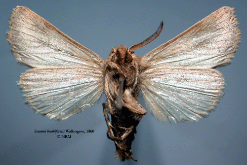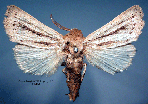 ![]() Sesamia bombiformis Wallengren, 1860. Reference: Wallengren, H.D.J. 1860, Lepidopterologische Mittheilungen. - Wiener Entomologische Monatschrift Band IV Nr. 6, Karl Ueberreuter, Alservorstadt. pp 161-176. Return to species-list. |