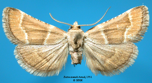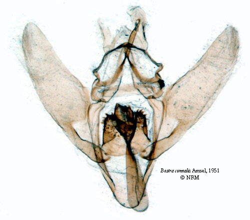 Bostra comealis Amsel, 1951. Reference: Amsel, H.G. 1951, Die Microlepidopteren der Brandt'schen Iran-Ausbeute 3. Teil. - Arkiv för Zoologi Band 1 nr. 36, Almqvist & Wiksells Boktryckeri AB, Uppsala. pp. 525-563 Mit 87 Figuren im Text. Return to species-list. |