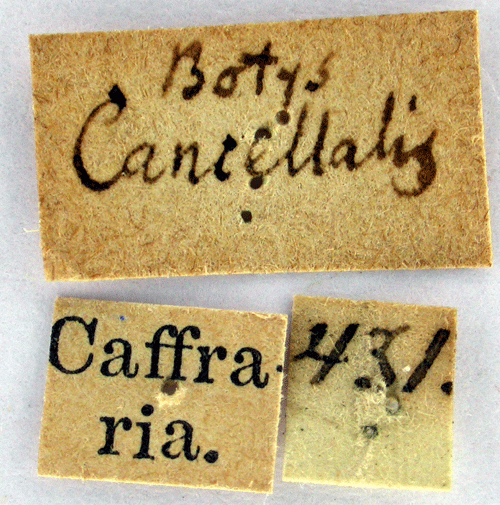 Reference: Zeller, P.C. 1852, Lepidoptera Microptera quae J.A. Wahlberg in Caffrorum terra collegit.P. A. Norstedt & Söner. pp. 34-35.