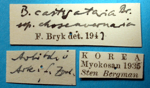 ![]() Cleora castigataria chosenarmia Bryk, 1948. Reference: Bryk, F. 1948, Zur Kenntnis der Großschmetterlinge von Korea. Pars II. Macrofrenatae II (finis): Notodontidae, Lymantriidae, Saturniidae, Brahmaeidae, Drepanidae, Epiplemidae, Lasiocampidae, Arctiidae, Thyatiridae, Noctuidae, Geometridae. Heteroneura: Fam.: Cochlifiidae, Zygaenidae. Tineoidea: Fam.: Cossidae, Psychidae. Mit 7 Tafeln. - Arkiv för Zoologi Band 41 A nr. 1, Almqvist & Wiksell Boktryckeri, Uppsala. 1 - 225 pp. Return to species-list. |