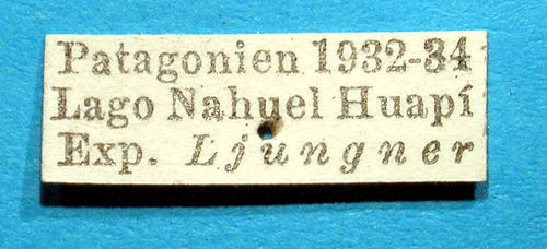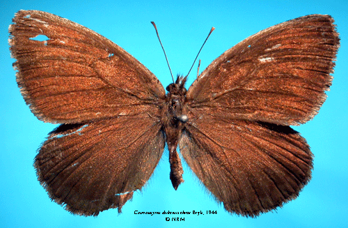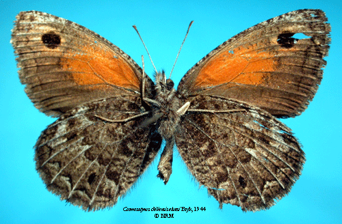 ![]() Cosmosatyrus chiliensis elwesi Bryk, 1944. Reference: Bryk, F. 1944, Über die Schmetterlingsausbeute der Schwedischen wissenschaftlichen Expedition nach Patagonien 1932/1934. Report Number 11 from the Ljungner Expedition 1932/1934. Mit 2 Tafeln. - Arkiv för Zoologi Band 36 A nr. 3, Almqvist & Wiksell Boktryckeri, Uppsala. 1 - 30 pp. Return to species-list. |