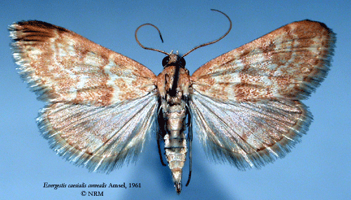 Evergestis caesialis comealis Amsel, 1961. Reference: Amsel, H.G. 1961, Die Microlepidopteren der Brandt'schen Iran-Ausbeute 5. Teil. - Arkiv för Zoologi Band 13 nr. 17, Almqvist & Wiksells Boktryckeri AB, Uppsala. pp. 323-445 Mit 263 Abbildungen. Return to species-list. |