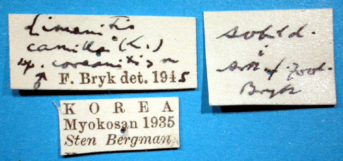 Reference: Bryk, F. 1946, Zur Kenntnis der Großschmetterlinge von Korea. Pars I. Rhopalocera, Hesperiodea et Macrofrenatae I Sphingidae. Mit 5 Tafeln und 1 Karte. - Arkiv för Zoologi Band 38 A nr. 3, Almqvist & Wiksell Boktryckeri, Uppsala. 1 - 74 pp.