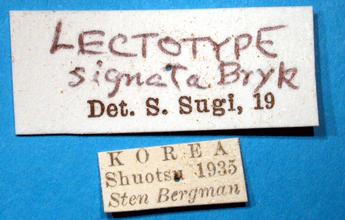 ![]() Lophopteryx camelina signata Bryk, 1948. Reference: Bryk, F. 1948, Zur Kenntnis der Großschmetterlinge von Korea. Pars II. Macrofrenatae II (finis): Notodontidae, Lymantriidae, Saturniidae, Brahmaeidae, Drepanidae, Epiplemidae, Lasiocampidae, Arctiidae, Thyatiridae, Noctuidae, Geometridae. Heteroneura: Fam.: Cochlifiidae, Zygaenidae. Tineoidea: Fam.: Cossidae, Psychidae. Mit 7 Tafeln. - Arkiv för Zoologi Band 41 A nr. 1, Almqvist & Wiksell Boktryckeri, Uppsala. 1 - 225 pp. Return to species-list. |