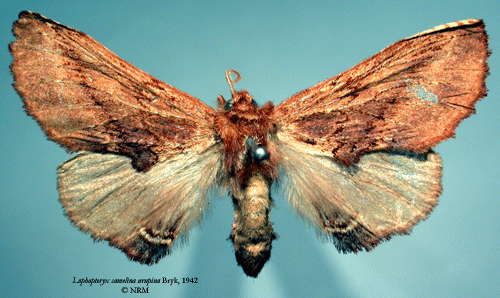 ![]() Lophopteryx camelina urupina Bryk, 1942. Reference: Bryk, F. 1942, Zur Kenntnis der Grosschmetterlinge der Kurilen (Neue Schmetterlinge aus dem Reichsmuseum in Stockholm VI.). - Deutsche Entomologische Zeitschrift "Iris" Band 56, Dresden. 1 - 90 pp. Mit 2 Tafeln und 4 Textabbildungen. Return to species-list. |