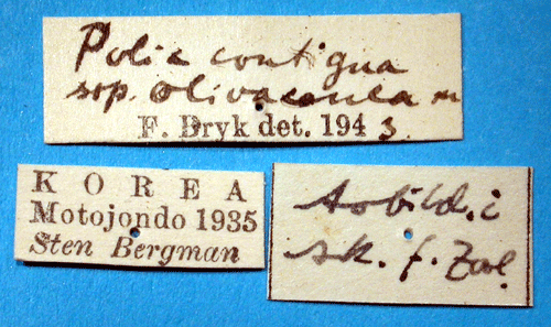 Reference: Bryk, F. 1948, Zur Kenntnis der Großschmetterlinge von Korea. Pars II. Macrofrenatae II (finis): Notodontidae, Lymantriidae, Saturniidae, Brahmaeidae, Drepanidae, Epiplemidae, Lasiocampidae, Arctiidae, Thyatiridae, Noctuidae, Geometridae. Heteroneura: Fam.: Cochlifiidae, Zygaenidae. Tineoidea: Fam.: Cossidae, Psychidae. Mit 7 Tafeln. - Arkiv för Zoologi Band 41 A nr. 1, Almqvist & Wiksell Boktryckeri, Uppsala. 1 - 225 pp.