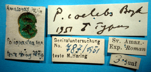 ![]() Poliopastea coelebs Bryk, 1953. Reference: Bryk, F. 1953, Lepidoptera aus dem Amazonasgebiete und aus Peru gesammelt von Dr. Douglas Melin und Dr. Abraham Roman. - Arkiv för Zoologi Band 5 nr. 1, Almqvist & Wiksell Boktryckeri, Uppsala. 268 pp. Return to species-list. |