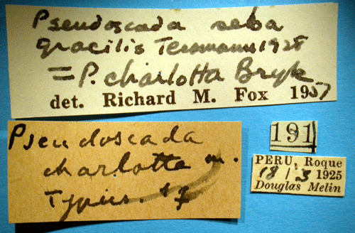 ![]() Pseudoscada charlotta Bryk, 1953. Reference: Bryk, F. 1953, Lepidoptera aus dem Amazonasgebiete und aus Peru gesammelt von Dr. Douglas Melin und Dr. Abraham Roman. - Arkiv för Zoologi Band 5 nr. 1, Almqvist & Wiksell Boktryckeri, Uppsala. 268 pp. Return to species-list. |