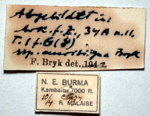 Reference: Bryk, F. 1942, Entomological Results from the Swedish Expedition 1934 to Burma and British India. Lepidoptera: Thyatiridae. - Arkiv för Zoologi Band 34 A nr. 11, Almqvist & Wiksell Boktryckeri, Stockholm. pp. 1 - 16, Mit 1 Karte und 2 Tafeln.