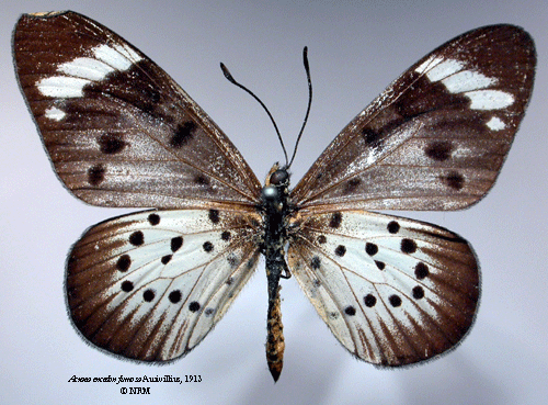 ![]() Acraea encedon fumosa Aurivillius, 1913. Reference: Aurivillius, Chr. 1913, in Seitz, A. Die Grosschmetterlinge der Erde. - Die Afrikanischen Tagfalter Band 13 p. 258, Alfred Kernen Verlag, Stuttgart. Return to species-list. |
