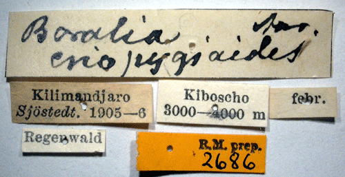 ![]() Borolia eriopygoides Aurivillius, 1910. Reference: Aurivillius, Chr. 1910, in Sjöstedt, Y. Wissenschaftliche Ergebnisse der Swedischen Zoologischen Expedition nach dem Kilimandjaro, dem Meru und den Umgebenden Masaisteppen Deutsch-Ostafrikas 1905-1906 2 Band. - 9. Lepidoptera pp. 1-56, P. Palmquist AB., Stockholm. Return to species-list. |