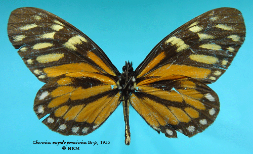 ![]() Charonias eurytele peruvionias Bryk, 1953. Reference: Bryk, F. 1953, Lepidoptera aus dem Amazonasgebiete und aus Peru gesammelt von Dr. Douglas Melin und Dr. Abraham Roman. - Arkiv för Zoologi Band 5 nr. 1, Almqvist & Wiksell Boktryckeri, Uppsala. 268 pp. Return to species-list. |