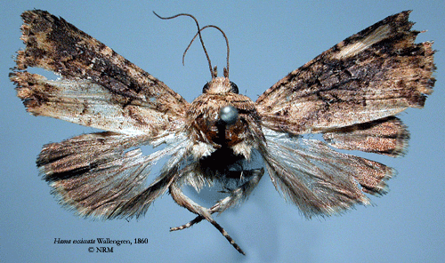 ![]() Hama exsiccata Wallengren, 1860. Reference: Wallengren, H.D.J. 1860, Lepidopterologische Mittheilungen. - Wiener Entomologische Monatschrift Band IV Nr. 6, Karl Ueberreuter, Alservorstadt. pp 161-176. Return to species-list. |
