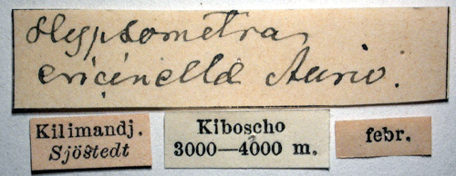 ![]() Hypsometra ericinellae Aurivillius, 1910. Reference: Aurivillius, Chr. 1910, in Sjöstedt, Y. Wissenschaftliche Ergebnisse der Swedischen Zoologischen Expedition nach dem Kilimandjaro, dem Meru und den Umgebenden Masaisteppen Deutsch-Ostafrikas 1905-1906 2 Band. - 9. Lepidoptera pp. 1-56, P. Palmquist AB., Stockholm. Return to species-list. |