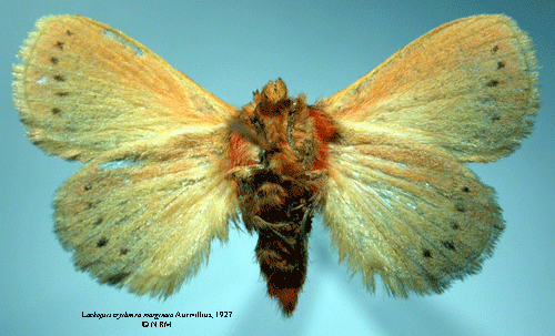 ![]() Laeliopsis erythrura marginata Aurivillius, 1927. Reference: Aurivillius, Chr. 1927, in Seitz, A. Die Grosschmetterlinge der Erde. - Die Afrikanischen Spinner und Schwärmer Band 14 p. 217, Alfred Kernen Verlag, Stuttgart. Return to species-list. |