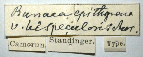 ![]() Lobobunaea epithyrena bispecularis Aurivillius, 1925. Reference: Aurivillius, Chr. 1925, Ergebnisse der Zweiten Deutschen Zentral-Afrika-Expedition 1910 - 1911. - Lepidoptera IV Teil. pp. 1243-1359, Leipzig. Return to species-list. |