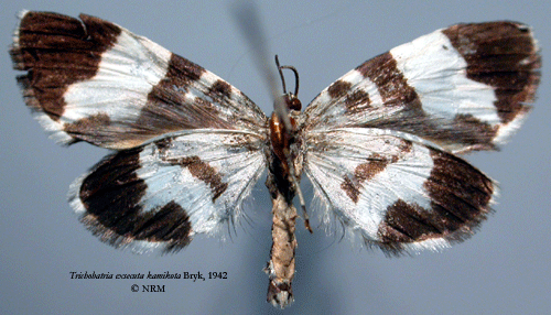 ![]() Trichobaptria exsecuta kamikota Bryk, 1942. Reference: Bryk, F. 1942, Zur Kenntnis der Grosschmetterlinge der Kurilen (Neue Schmetterlinge aus dem Reichsmuseum in Stockholm VI.). - Deutsche Entomologische Zeitschrift "Iris" Band 56, Dresden. 1 - 90 pp. Mit 2 Tafeln und 4 Textabbildungen. Return to species-list. |
