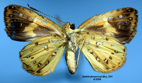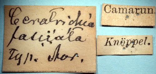 Ceratichia fasciata Aurivillius, 1896. Reference: Aurivillius, C. 1896, Beiträge zur Kenntniss der Insektenfauna von Kamerun 2. Tagfalter. - Entomologisk tidskrift vol 17, Iduns Kongl. Hofboktryckeri, Stockholm. pp. 279-292. Return to species-list. |
