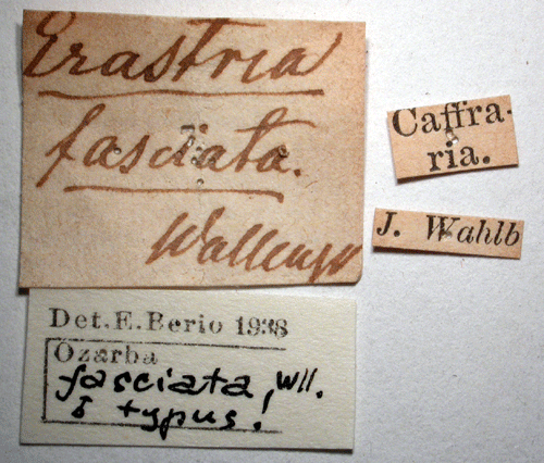 ![]() Erastria fasciata Wallengren, 1860. Reference: Wallengren, H.D.J. 1860, Lepidopterologische Mittheilungen. - Wiener Entomologische Monatschrift Band IV Nr. 6, Karl Ueberreuter, Alservorstadt. pp 161-176. Return to species-list. |