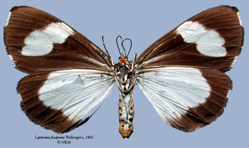 ![]() Leptosoma fuscipenne Wallengren, 1860. Reference: Wallengren, H.D.J. 1860, Lepidopterologische Mittheilungen. - Wiener Entomologische Monatschrift Band IV Nr. 6, Karl Ueberreuter, Alservorstadt. pp 161-176. Return to species-list. |