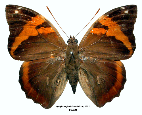 ![]() Opsiphanes fabricii Aurivillius, 1882. Reference: Aurivillius, Chr. 1882, Kongliga Svenska Vetenskaps-Akademiens Handlingar, Band 19 no: 5. - Recensio Critica Lepidopterorum Musei Ludovicae Ulricae quae descripsit Carolus A Linné p. 117, P.A. Norstedt & Söner, Stockholm. Return to species-list. |
