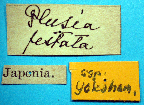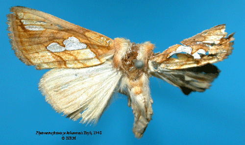![]() Phytometra festata yokohamensis Bryk, 1948. Reference: Bryk, F. 1948, Zur Kenntnis der Großschmetterlinge von Korea. Pars II. Macrofrenatae II (finis): Notodontidae, Lymantriidae, Saturniidae, Brahmaeidae, Drepanidae, Epiplemidae, Lasiocampidae, Arctiidae, Thyatiridae, Noctuidae, Geometridae. Heteroneura: Fam.: Cochlifiidae, Zygaenidae. Tineoidea: Fam.: Cossidae, Psychidae. Mit 7 Tafeln. - Arkiv för Zoologi Band 41 A nr. 1, Almqvist & Wiksell Boktryckeri, Uppsala. 1 - 225 pp. Return to species-list. |