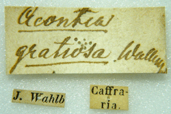 Reference: Wallengren, H.D.J. 1856, Anteckningar i Zoologien. I. Kafferlandets Macrolepidopter-Fauna. - Akademisk Afhandling, Berlingska Boktryckeriet, Lund. 97 pp.