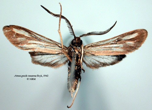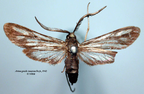 ![]() Artena gracilis tomarena Bryk, 1942. Reference: Bryk, F. 1942, Zur Kenntnis der Grosschmetterlinge der Kurilen (Neue Schmetterlinge aus dem Reichsmuseum in Stockholm VI.). - Deutsche Entomologische Zeitschrift "Iris" Band 56, Dresden. 1 - 90 pp. Mit 2 Tafeln und 4 Textabbildungen. Return to species-list. |