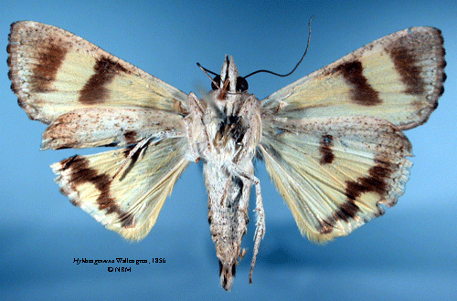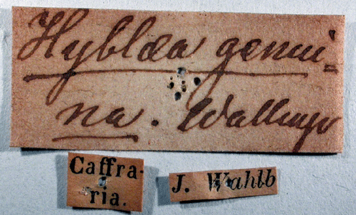 ![]() Hyblaea genuina Wallengren, 1856. Reference: Wallengren, H.D.J. 1856, Anteckningar i Zoologien. I. Kafferlandets Macrolepidopter-Fauna. - Akademisk Afhandling, Berlingska Boktryckeriet, Lund. 97 pp. Return to species-list. |
