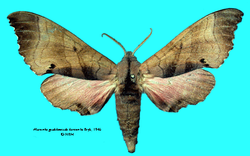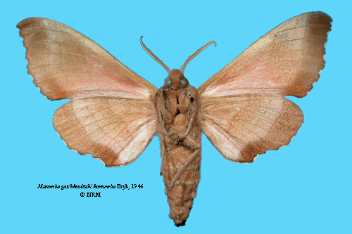 ![]() Marumba gaschkewitschi koreumba Bryk, 1946. Reference: Bryk, F. 1946, Zur Kenntnis der Großschmetterlinge von Korea. Pars I. Rhopalocera, Hesperiodea et Macrofrenatae I Sphingidae. Mit 5 Tafeln und 1 Karte. - Arkiv för Zoologi Band 38 A nr. 3, Almqvist & Wiksell Boktryckeri, Uppsala. 1 - 74 pp. Return to species-list. |