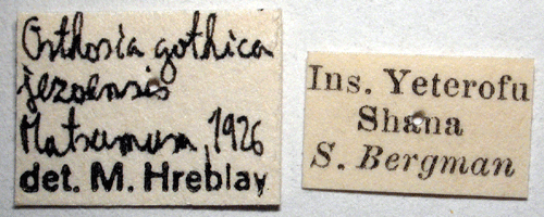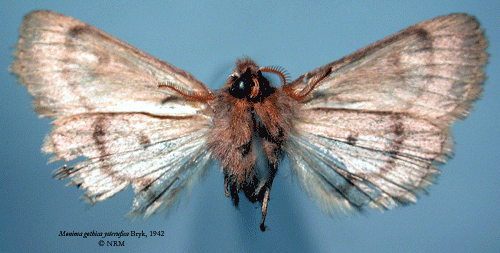 ![]() Monima gothica yeterufica Bryk, 1942. Reference: Bryk, F. 1942, Zur Kenntnis der Grosschmetterlinge der Kurilen (Neue Schmetterlinge aus dem Reichsmuseum in Stockholm VI.). - Deutsche Entomologische Zeitschrift "Iris" Band 56, Dresden. 1 - 90 pp. Mit 2 Tafeln und 4 Textabbildungen. Return to species-list. |