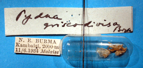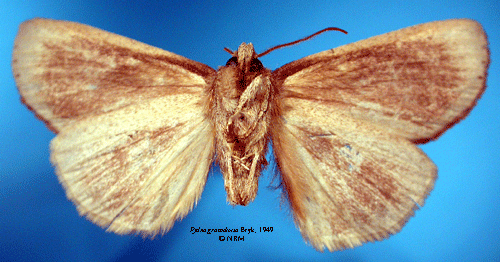 ![]() Pydna griseodivisa Bryk, 1949. Reference: Bryk, F. 1949, Entomological Results from the Swedish Expedition 1934 to Burma and British India. Lepidoptera: Notodontidae Stephens, Cossidae Newman and Hepialidae Stephens. Gesammelt von René Malaise. Mit 4 Tafeln und 1 Karte in Text. - Arkiv för Zoologi Band 42 A nr. 19, Almqvist & Wiksell Boktryckeri, Uppsala. 1 - 51 pp. Return to species-list. |