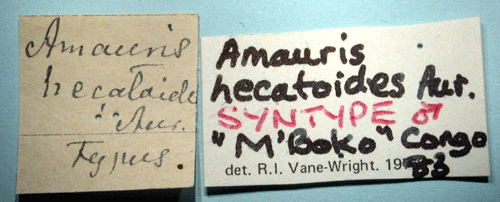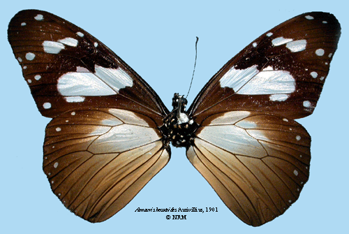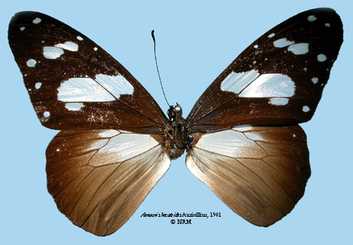Amauris hecatoides Aurivillius, 1901. Reference: Aurivillius, C. 1901, Diagnosen neuer Lepidopteren aus Afrika 6. - Entomologisk tidskrift vol 22, Iduns Kongl. Hofboktryckeri, Stockholm. pp. 113-128. Return to species-list. |
