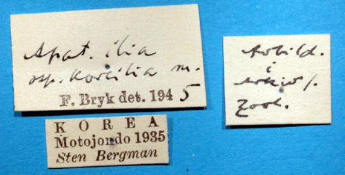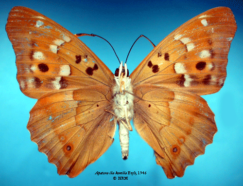 ![]() Apatura ilia koreilia Bryk, 1946. Reference: Bryk, F. 1946, Zur Kenntnis der Großschmetterlinge von Korea. Pars I. Rhopalocera, Hesperiodea et Macrofrenatae I Sphingidae. Mit 5 Tafeln und 1 Karte. - Arkiv för Zoologi Band 38 A nr. 3, Almqvist & Wiksell Boktryckeri, Uppsala. 1 - 74 pp. Return to species-list. |