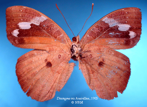 Diestogyna iris Aurivillius, 1903. Reference: Aurivillius, C. 1903, Verzeichnis einer Schmetterlingssamlung aus dem Katanga-Gebiete im Südwestlichen theile des Congostaates. - Arkiv för Zoologi Band 1 nr. 12, Kungl. Boktryckeriet P.A. Norstedt & Söner, Stockholm. pp. 245-254 Mit 6 Textfiguren. Return to species-list. |