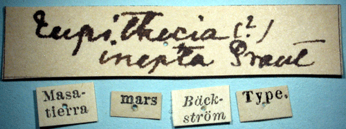 ![]() Eupithecia inepta Aurivillius, 1922. Reference: Aurivillius, Chr., Prout, L.B., Meyrick, E. 1922, Lepidopteren von Juan Fernandez und der Oster-Insel. - The Natural History of Juan Fernandez and Easter Island, Edited by Dr. Carl Skottsberg, vol III. pp. 255-270, Almqvist & Wiksell, Uppsala. Return to species-list. |